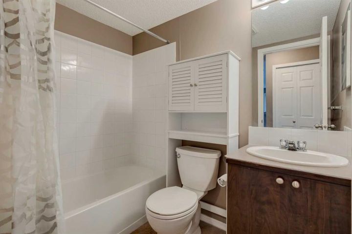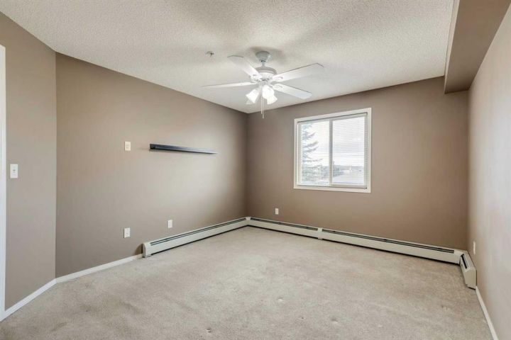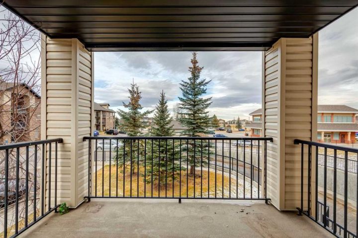 Welcome to Bridlecrest Pointe, a well-managed complex in the heart of Bridlewood. This bright second-floor corner unit offers a spacious open layout with a functional kitchen featuring ample cabinetry + sleek black appliances. The dining area flows into a large living room with access to a covered balcony. The primary bedroom easily fits a king bed + includes a walk-through closet to a 4-piece ensuite. A second bedroom, full bath + in-suite laundry with storage complete the space. Includes underground parking. Close to shopping, schools + quick access to Stoney Trail, this property is perfect for first-time buyers or investors.
