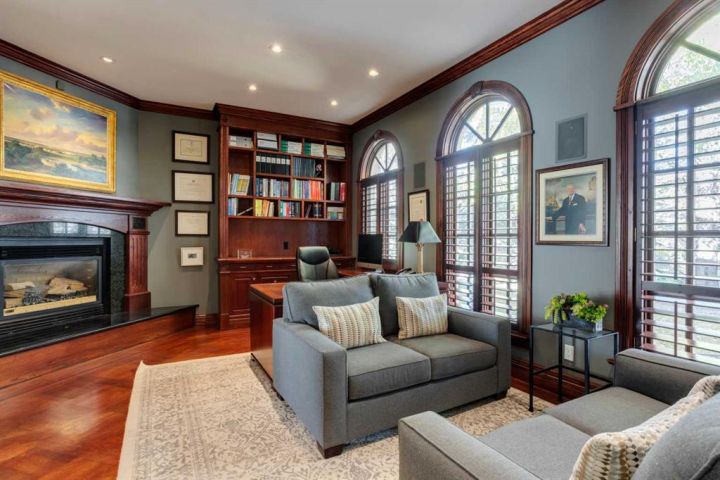 Timeless in design and uncompromising in craftsmanship, this bespoke neoclassical estate ranks among the city's most distinguished residences. Nestled in a fully treed, meticulously landscaped setting ensuring complete privacy, it delivers an unforgettable first impression. The brick façade features columns, concrete balustrades, and wrought-iron gates to assert its stately presence. A gated, heated driveway leads to a triple garage and an exceptional underground parkade accommodating eight more vehicles, complete with car wash and workshop. Inside, a dramatic curved staircase anchors the grand foyer, introducing the artistry throughout. The main floor excels in entertaining, ideal for galas, business dinners, or family celebrations with generous gathering spaces, a cloak room, two elegant powder rooms, expansive corridors, and multiple French doors opening to terraces and gardens. A refined formal living room with limestone-trimmed fireplace, display cabinet and graceful chandelier has ample room for a grand piano. The spacious dining room with fireplace and butler’s pantry is ready for formal dining. An inviting library boasts wood bookcases and a lounge for quiet reflection. The family room provides multiple sitting areas, a wet bar, and access to the south-facing circular sunroom overlooking the private grounds. Adjacent is a classic kitchen with commercial-grade appliances including a six-burner cooktop, double wall ovens, and warming drawers. A casual dining area suits morning coffee or weeknight meals while the walk-in pantry contains an extra freezer and water dispenser. Upstairs, the primary suite is a private sanctuary with a serene sitting room and fireplace, plus doors out to the south-facing rooftop patio and multiple walk-in closets. A marble clad ensuite indulges with dual vanities, multi-head shower, and generous tub. The second and third bedrooms each have ensuites, while the third-floor guest suite/office features balcony views of the reservoir and mountains, plus a three-piece bath. Downstairs, the lower level focuses on leisure: a home theatre with tiered seating, a snack bar with candy display, a Tuscan-inspired wine cellar with barrel-vaulted ceiling and wrought-iron gates, gym/recreation room, and steam room. Private staff quarters include a secondary kitchen, fifth bedroom/hobby room, laundry with double washer/dryers, and separate entry. Located in a prestigious, tightly held enclave backing protected parkland, this property ensures privacy and security. Created for the connoisseur of living well, this home seamlessly blends spaces for health, leisure and passion. Every detail, from the classical proportions to the enduring materials reflects a home crafted for how discerning families truly live: entertaining beautifully, living comfortably, and enjoying privacy without compromise. A residence that embodies grace, strength and refined living, an iconic estate in every sense.