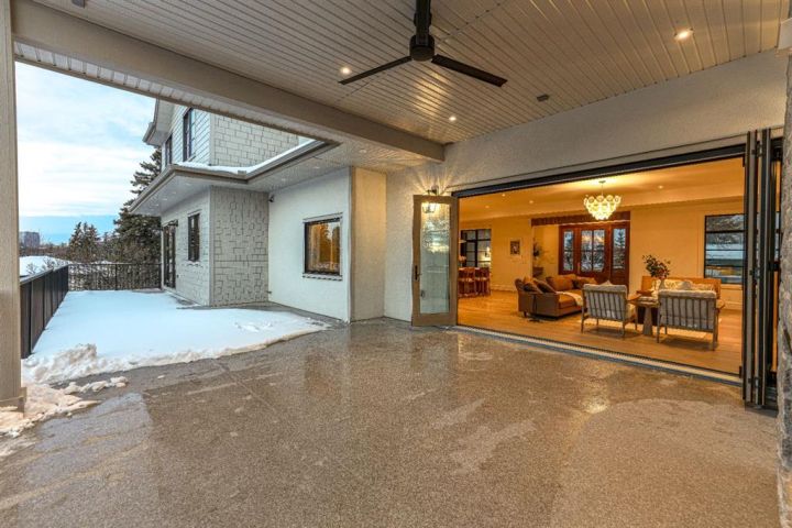 Welcome to this exceptional custom residence on prestigious Toronto Crescent in highly sought-after St. Andrews Heights. Perfectly positioned on an expansive 9,000 sq. ft. lot, this meticulously designed home offers over 6,000 sq. ft. of developed luxury living, crafted by Maxime Chin Designs with uncompromising detail and style. This remarkable property features an 80’ wide backyard, walkout basement, 63’ full-width balcony, attached triple garage, 5 bedrooms, 5.5 bathrooms, 4 gas fireplaces, bonus room with balcony, butler’s pantry, dedicated office, home gym, Sub-Zero/Wolf appliance package, designer lighting, and so much more. Enter through the grand foyer and be welcomed by soaring 10’ ceilings and expansive sight-lines. To the side, the inviting living room showcases beautiful built-ins and an oversized gas fireplace. LUX accordion doors open seamlessly to the massive covered balcony—complete with an outdoor fireplace—creating an exceptional indoor/outdoor living experience. The stunning kitchen features custom oak cabinetry, exquisite quartz surfaces, a 48” Wolf gas range, Sub-Zero refrigerator, and a spacious butler’s pantry with sink, dishwasher, and convenient shelving. The formal dining room is wrapped in bespoke wallpaper that extends to the limewash ceiling and includes a stunning bar area with direct access to the balcony. A private office, stylish powder room, and a well-appointed mudroom with built-in lockers complete the main floor. The luxurious primary suite features a beautiful arched window offering a glimpse of the downtown Calgary skyline. The spa-inspired 5-piece ensuite includes a freestanding reeded tub, large walk-in steam shower, marble backsplash & dual vanity. Also a spacious walk-in closet outfitted with custom built cabinetry rounds out the suite. The builder has left the primary room as a blank canvas and will work with the new homeowners to create a custom oasis. Three additional bedrooms (two with ensuites), a full main bath, and a laundry room with two sets of washers and dryers offer convenience and comfort. A spectacular bonus room crowns the upper level with 12’ ceilings, a gas fireplace, private balcony, built-in bar, and a dedicated homework station. The basement level is bright and open thanks to the large windows due to the walkout design, the lower level features a spacious rec room with gas fireplace, full bar, gym, 5th bedroom, and a serene 4-piece bath. Outside you will find the extraordinary 80’ wide backyard providing exceptional usable space, complete with a ground-level, covered patio and endless opportunities for outdoor enjoyment. This home must be seen in person to truly appreciate the craftsmanship, thoughtful design, and rare combination of luxury and location.