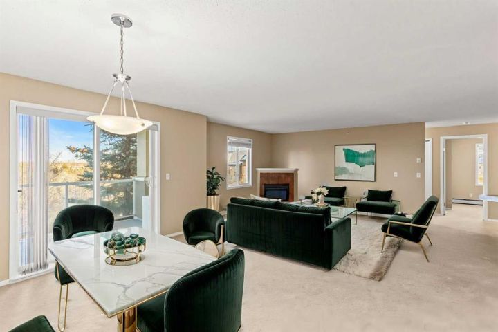 Welcome to this exceptional 3 bedroom, 2 bathroom condo offering over 1,500 sq ft of bright, functional living space in Evergreen. Perfectly positioned backing onto the lush greenery of Fish Creek Provincial Park, this home brings nature right to your doorstep while still being minutes from urban conveniences. Step inside to a generous floor plan featuring a spacious living and dining area, ideal for entertaining or relaxing. Enjoy two private balconies — one off the living room and one off the primary bedroom — both with scenic views of downtown Calgary and parkland beyond. Ample storage space throughout and two titled underground heated parking stalls add unmatched convenience and comfort. Another major benefit: all utilities are included in the condo fees, ensuring predictable monthly expenses and excellent value. Location is truly a highlight — nature lovers will appreciate being steps from Fish Creek Provincial Park, one of Canada’s largest urban parks with hundreds of kilometers of trails for walking, cycling, picnicking, swimming, and year-round outdoor adventure. Easy access to transit, shopping, restaurants, parks, and schools adds everyday convenience, making this condo a perfect place to call home or an outstanding investment. Easy access to transit, shopping, restaurants, parks, and schools adds everyday convenience, making this condo a perfect place to call home or an outstanding investment.