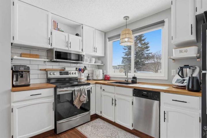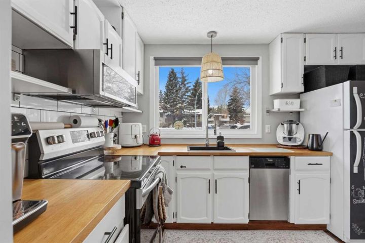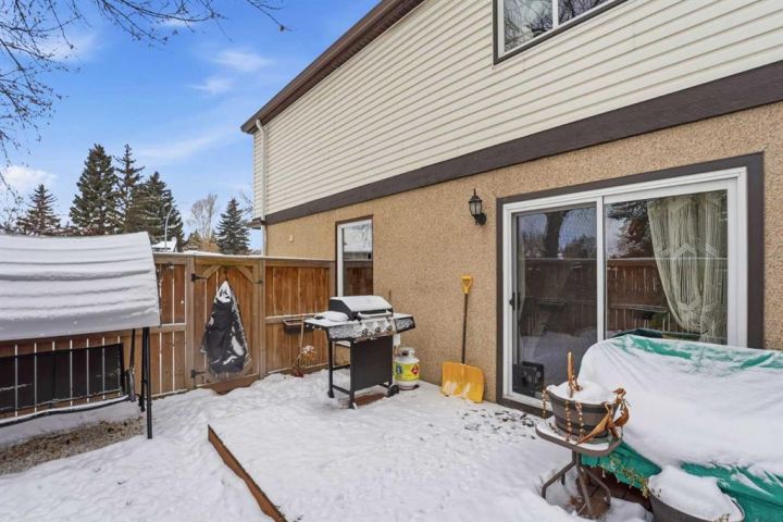 Tastefully updated 2-storey townhouse where comfort and coziness come together beautifully. Upon entry, you are welcomed by a modern mudroom that sets the tone for the home. The main floor features a spacious kitchen equipped with stainless steel appliances, offering both style and functionality for everyday cooking. A bright breakfast nook provides the perfect space for family meals, while a large window makes even doing dishes more enjoyable. Off the kitchen, the comfortable living room showcases a stylish accent wall and patio doors leading to an inviting backyard with a deck and mature trees—ideal for relaxing after a long day or enjoying your morning coffee. This level is completed by a convenient 2-piece bathroom. Upstairs, you’ll find three well-sized, bright bedrooms, a full bathroom, and a spacious closet offering ample storage for all your belongings. The recently developed basement adds even more living space, featuring generous storage behind a modern barn door, a large family room perfect for a kids’ play area, media room, or man cave, plus a versatile den ideal for a home office or quiet retreat. This home is truly an owner’s pride, with new fencing, gutters, and insulation completed in 2024 for added peace of mind. Enjoy a highly convenient location within walking distance to Superstore and the C-Train LRT station, and close to schools, Southcentre Mall, public library, golf courses, Trico Centre, Canyon Meadows Aquatic & Fitness Centre, and a variety of shopping options including Walmart and Canadian Tire. Additional highlights include your own private parking stall just steps away. This townhome offers the comfort of condominium living with the feel and warmth of a single-family home.