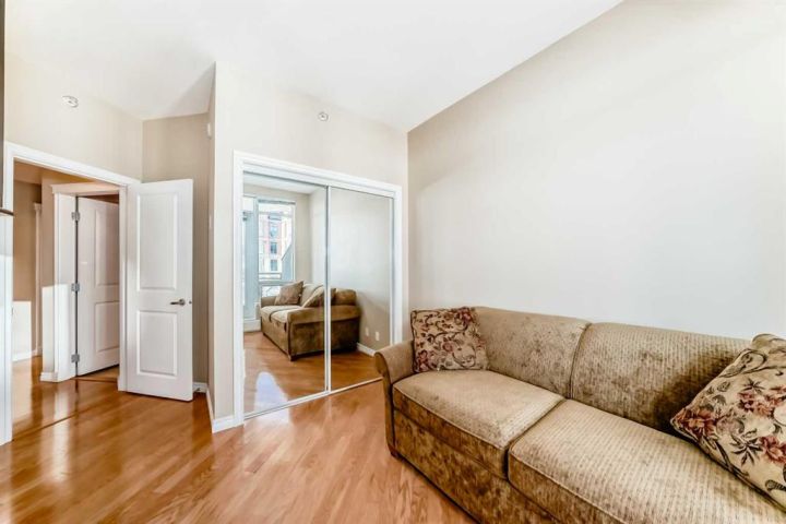the RENAISSANCE...CALGARY'S PREMIER RESIDENCE! Two bedroom plus den SKYHOME located in the WEST TOWER. PANORAMIC VIEW of the CITY SKYLINE. Gleaming hardwood floors, gas fireplace in living room, huge 24'X13' covered balcony also overlooks the city, TITLED heated indoor parking stall. Courteous 24/7 concierge, guest suite, residents theater, library, craft/hobby room, social room with fully equipped kitchen, gym/exercise room, car wash bay and direct access to mall. Indoor VISITOR parking. LRT station is just across the street. WHAT A BEAUTIFUL WAY TO LIVE!