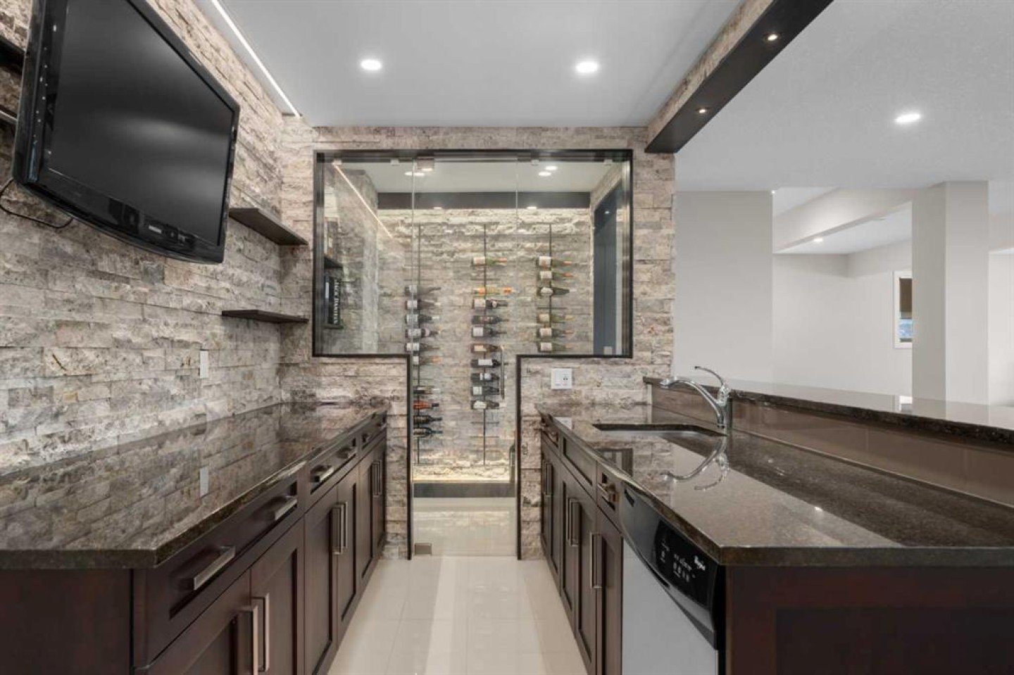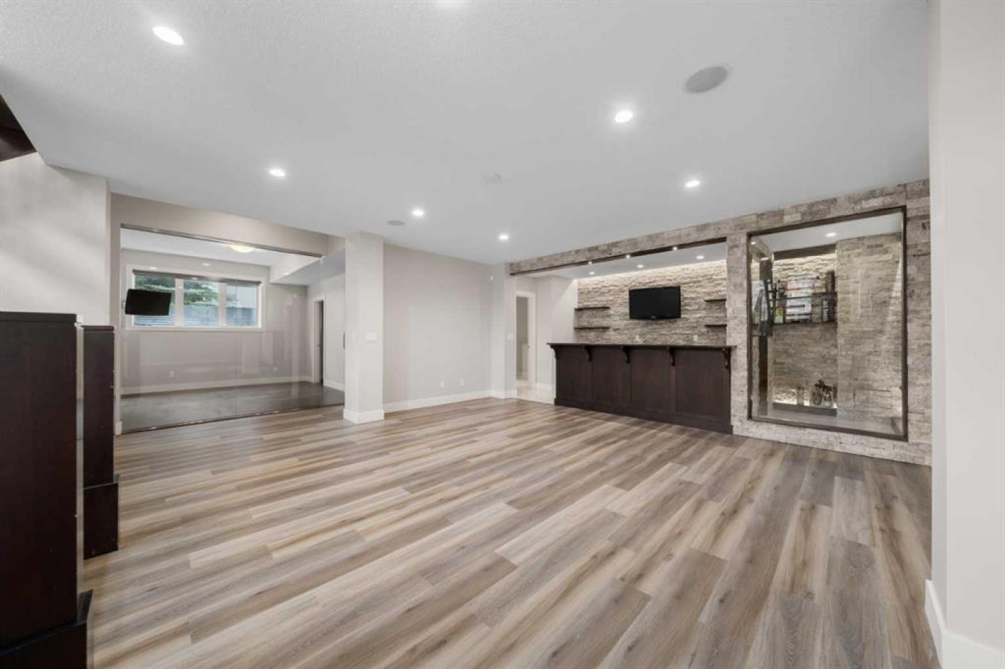 Welcome to this extraordinary, planned home in the tranquil Estate community of Watermark at Bearspaw. This wonderful home sits on a .30-acre lot with Mountain views of the back. The grand residence offers over 6,800 sq. ft. of living space with 5 bedrooms, 4.5 bathrooms, extra-large great room and a dining room, huge den with its own storage room, glass wall gym, fully developed Theatre room, and a spacious storage room. Designed to be unique and a very open plan, inviting to large gatherings as you enter the Grand Hall with sunken floors and a fountain to let you feel the bliss as you enter. Featuring 10-foot ceilings and more open to below areas. With lots of natural lights throughout the house you will feel the warmth and openness together. The double staircase leading to the fully landscaped backyard is a touch of marvel design with grandness in mind leading to the very large open plan basement with extra-large windows for a basement. The kitchen showcases premium appliances with Viking Professional series oversized fridge and freezer, a gas cooktop, quartz countertops, a large island with and a fully equipped spice kitchen/butler’s pantry. Upstairs you will walk into the large Bonus room, with a walkout balcony facing the mountains where you can enjoy your evening sunsets. The master bedroom and 3 additional bedrooms fully compliment the private spaces for the family members. The basement includes a full surround sound system projector home theatre system, which is staying with the house so is ready to use right away. The wine room and wet bar along with the special lighting make this part of the house an amazing place to host and make memories. The basement also includes a large bedroom and full bathroom for any guests along with a full-size gym with a glass wall, door, and a wall sized mirror. The Outdoor living includes a fully landscaped backyard with a special area for a fire table with a gas line already roughed in. For those beautiful nights, there is the rough ins and pergola built for the ideal hot tub. Other features include RO Water / hot and cold, Full water softener system. Extra dishwasher in basement, heated tiles in the grand hall, in floor heating in the basement and garage. This is a Home that provides all the comfort of a home for a family and a great place to host and entertain friends.