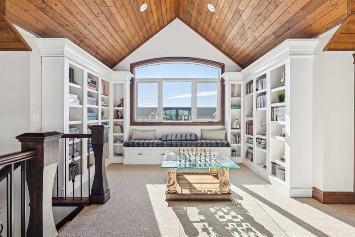 Beamed Ceilings, Bookcases, Breakfast Bar, Built-in Features, Ceiling Fan(s), Central Vacuum, Chandelier, Closet Organizers, Double Vanity, Granite Counters, High Ceilings, Jetted Tub, Kitchen Island, Natural Woodwork, Open Floorplan, Pantry, Recessed Lighting, Storage, Sump Pump(s), Vaulted Ceiling(s), Walk-In Closet(s), Wet Bar, Wired for Sound