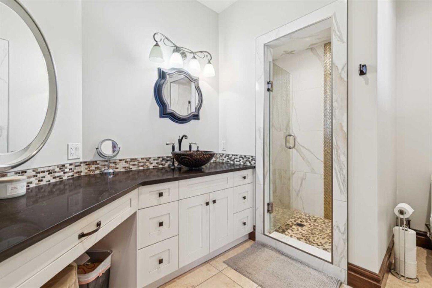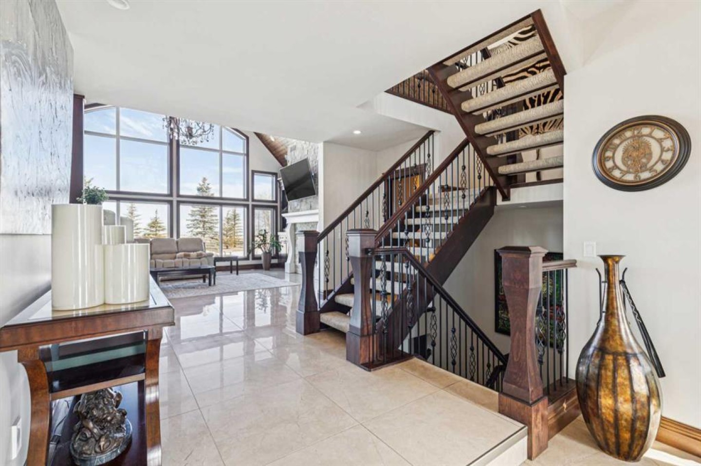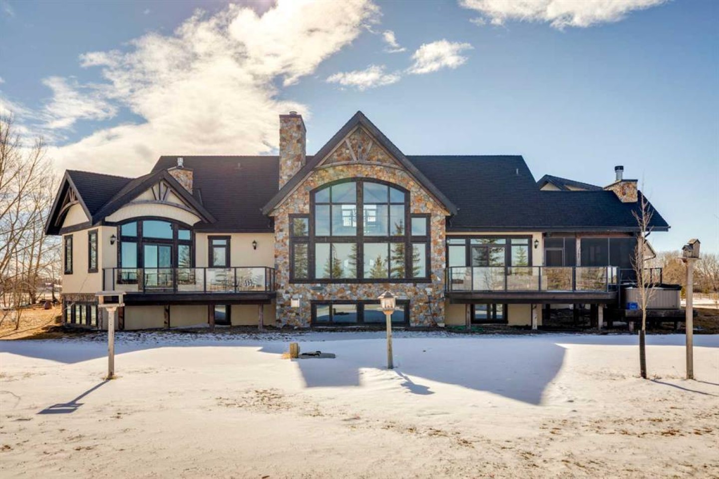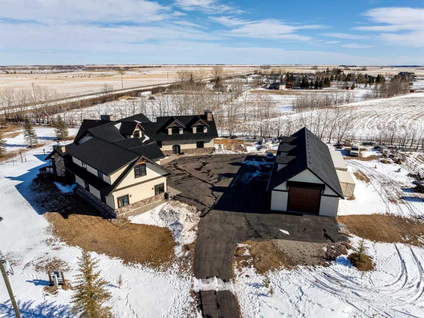 Luxurious Estate Living at its finest! You must experience this custom built JayWest home to appreciate everything it has to offer. Over 8,700 sq ft of finished living space with 4 bedrooms & 4 bathrooms, the abundance of living space in this home makes it ideal for large families. The heart of this home features the living room with vaulted ceilings, floor to ceiling windows and a gas burning fireplace. Open to the kitchen and dining area. The gourmet kitchen is beautifully finished with custom millwork and well appointed with two Miele dishwashers, Wolf gas cook-top, a Miele coffee machine, an integrated Sub-Zero fridge/freezer combo, and a Wolf Steam Oven. Off the dining area is a screened in patio with bbq gas line, wood burning fireplace and an additional north facing deck. The owner’s suite provided for the perfect retreat with vaulted ceilings, gas fireplace, a private deck, oversized walk-in closet with dressing area and spa like ensuite with jetted tub and walk-in steam shower. Unique to this home is the trophy room with over 20 ft ceilings and incredible wood burning fireplace with a stone overmantel. The perfect space to entertain, the uses for this space are endless. Quality features throughout this home include Italian 24x24 marble tiles, custom millwork & built-ins, timber ceilings, granite counter-tops, in-floor heating & recessed lighting. Built and finished with the Viceroy Building Package, featuring kiln-dried lumber and high-end materials. The basement level three large bedrooms, a 3pc ensuite and 4pc bathroom. The custom wet bar opens to the rec room with gas burning fireplace & a gym/flex area. Also on this level is a large laundry room and storage/utility area. The fully finished heated 4 car garage allows for ample parking. There is an additional 1,100 sq ft of versatile living space above the garage with built in desks its perfect for students, work from home, or a studio. The high-end mechanical room, valued at over $200,000, is complete with efficient air exchange system with independent zones, in-floor heating, multiple boilers, an air purification system, and RO water filtration & softener. The 2,700-square-foot detached shop complete with mezzanine, large overhead doors provide for an outdoorsman’s perfect workspace. Enjoy private country living with city accessibility, only 10 minutes to all the amenities of South Calgary. Minutes to the Calgary Health South Campus and quick access to Hwy 2. Located in the Foothills School Division.