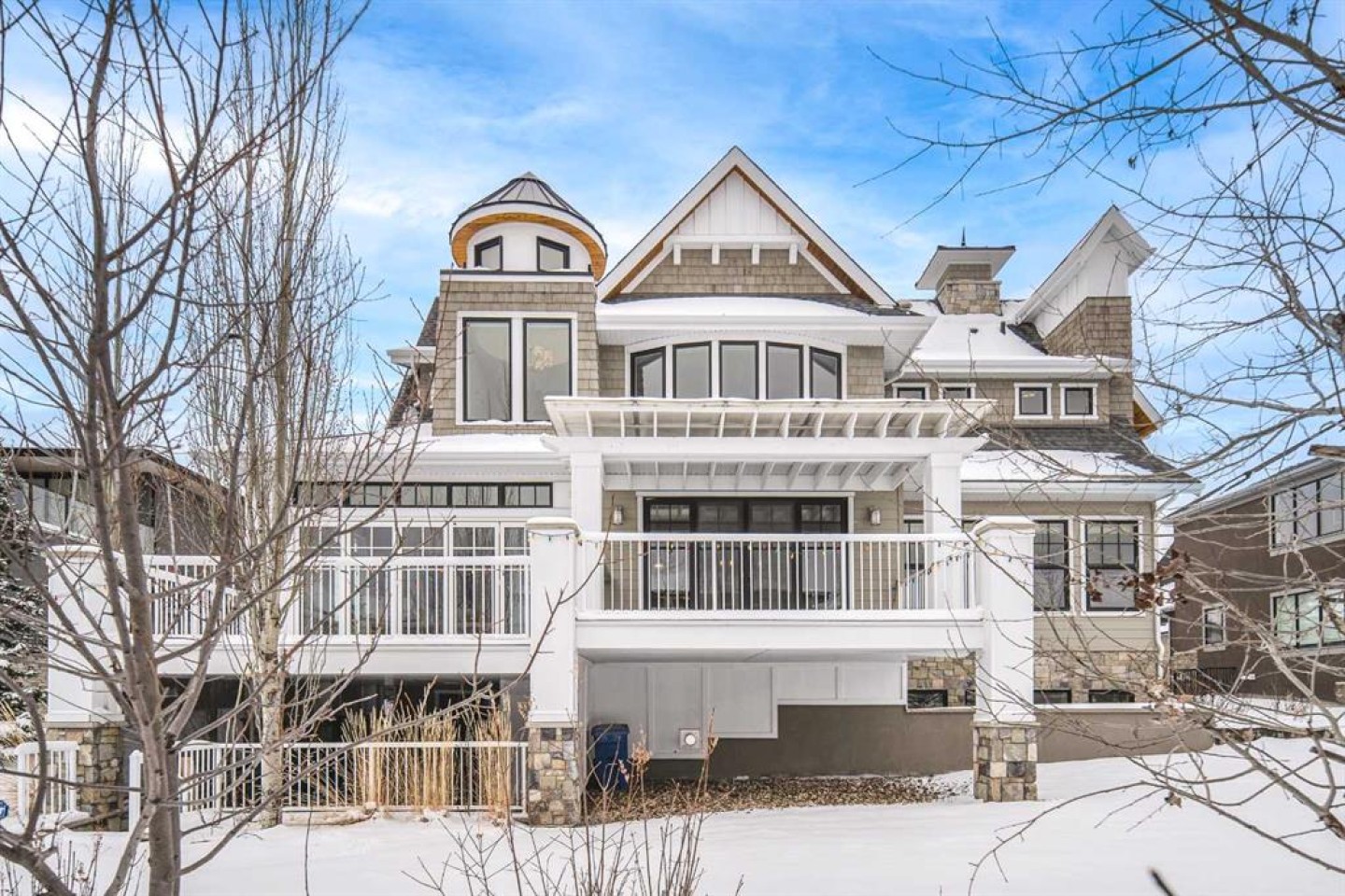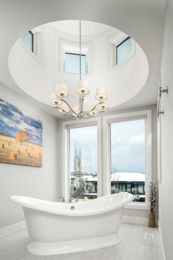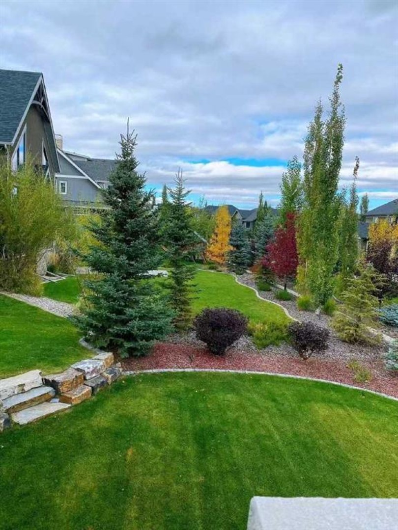 Welcome to this exquisite custom estate home by Wolf Custom Homes, nestled in the prestigious community of Watermark. Boasting over 5,400 sq. ft. of unparalleled craftsmanship and elegance, this former SHOWHOME offers tons of upgrades exemplifies luxury living. The house is in immaculate condition, having been used only occasionally by the owners. From the moment you step inside, you are welcomed by stunning luxury hardwood flooring that flows throughout the main level. The heart of the home is the gourmet chef’s kitchen, featuring beautifully crafted cabinetry, an oversized island with marble countertops, and top-of-the-line appliances, including a Sub-Zero fridge, Wolf gas stove and built-in oven, and an Asko dishwasher. Adjacent to the kitchen, the bright and inviting dining area and living room are adorned with expansive windows, allowing natural light to fill the space. A striking fireplace adds warmth and sophistication to this open-concept layout. For those who love to entertain, a formal dining room and a stunning 4-season sunroom extend onto an expansive, covered balcony—perfect for year-round enjoyment. A spacious main-floor office, complete with custom-built desk and shelving, offers the ideal work-from-home setup. A thoughtfully designed mudroom with a built-in bench and ample storage ensures effortless organization. Upstairs, retreat to the lavish primary suite, where a spectacular walk-in closet with custom spa-like 5-piece ensuite. Indulge in the free-standing soaker tub, oversized glass-enclosed shower, and dual vanities. Two additional generously sized bedrooms, each with its own walk-in closet and private 4-piece ensuite, provide ultimate comfort. A large bonus room and a convenient upper-floor laundry room complete this level. The fully developed walk-out basement, enhanced with in-floor heating, extends the home’s luxurious appeal. It boasts a spacious entertainment area with a fully equipped wet bar, a modern fitness room, an additional bedroom, and a beautifully appointed four-piece bathroom. Step outside to your private backyard oasis, where breathtaking views, lush landscaping, and elegant decorative LED system (10K value) and garden lighting (6K) create the perfect setting for entertaining or quiet evenings under the stars. Located in the exclusive estate community of Watermark, this home provides the tranquility of country living with the convenience of city amenities just minutes away. Enjoy scenic pathways, parks, playgrounds, and the renowned Central Plaza with a pavilion, picnic areas, firepit, sports courts, and lush green spaces. Experience the pinnacle of luxury—book your private showing today!