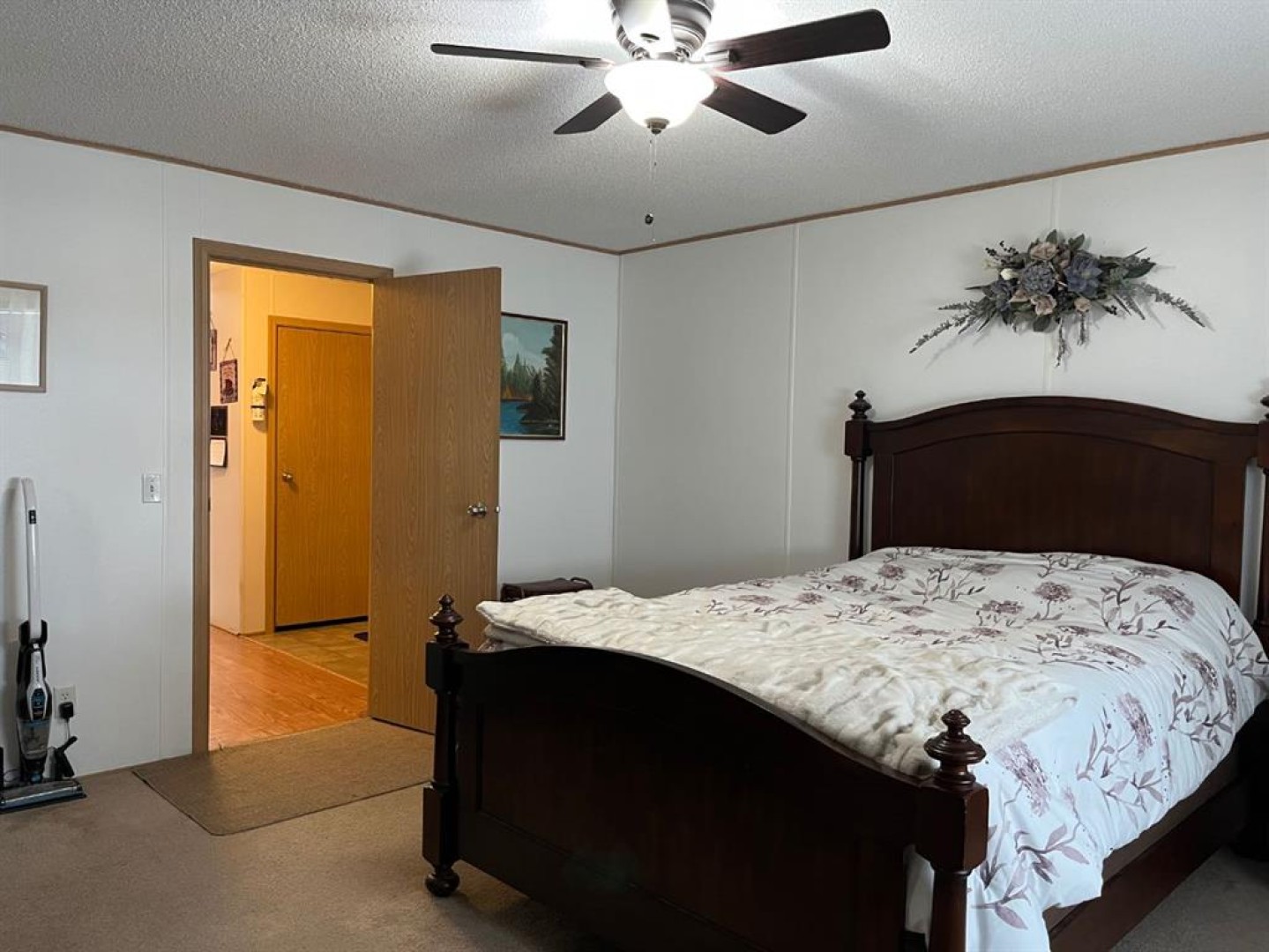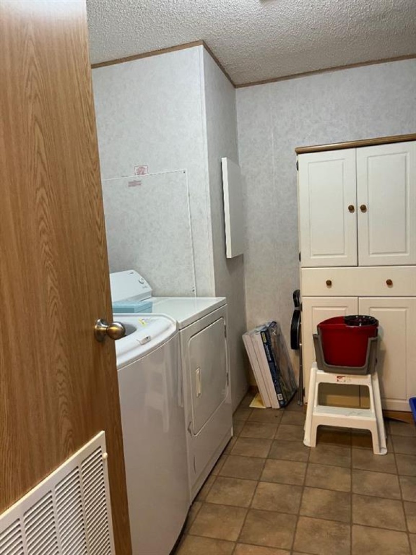 Very nice clean home, no neighbours behind. Fridge with ice maker and stove are only 4 years old, microwave is about 1 year old. Nice large bedrooms, sperate laundry/utility room with space for a freezer that stays with the mobile. Master bedroom is large with a walk in closet and ensuite with tub/shower combination. Kitchen, dining room and living room open concept and very nice size. There is a large deck off the back door, nice for BBQ;s and entertaining. Call for a time to view!!
